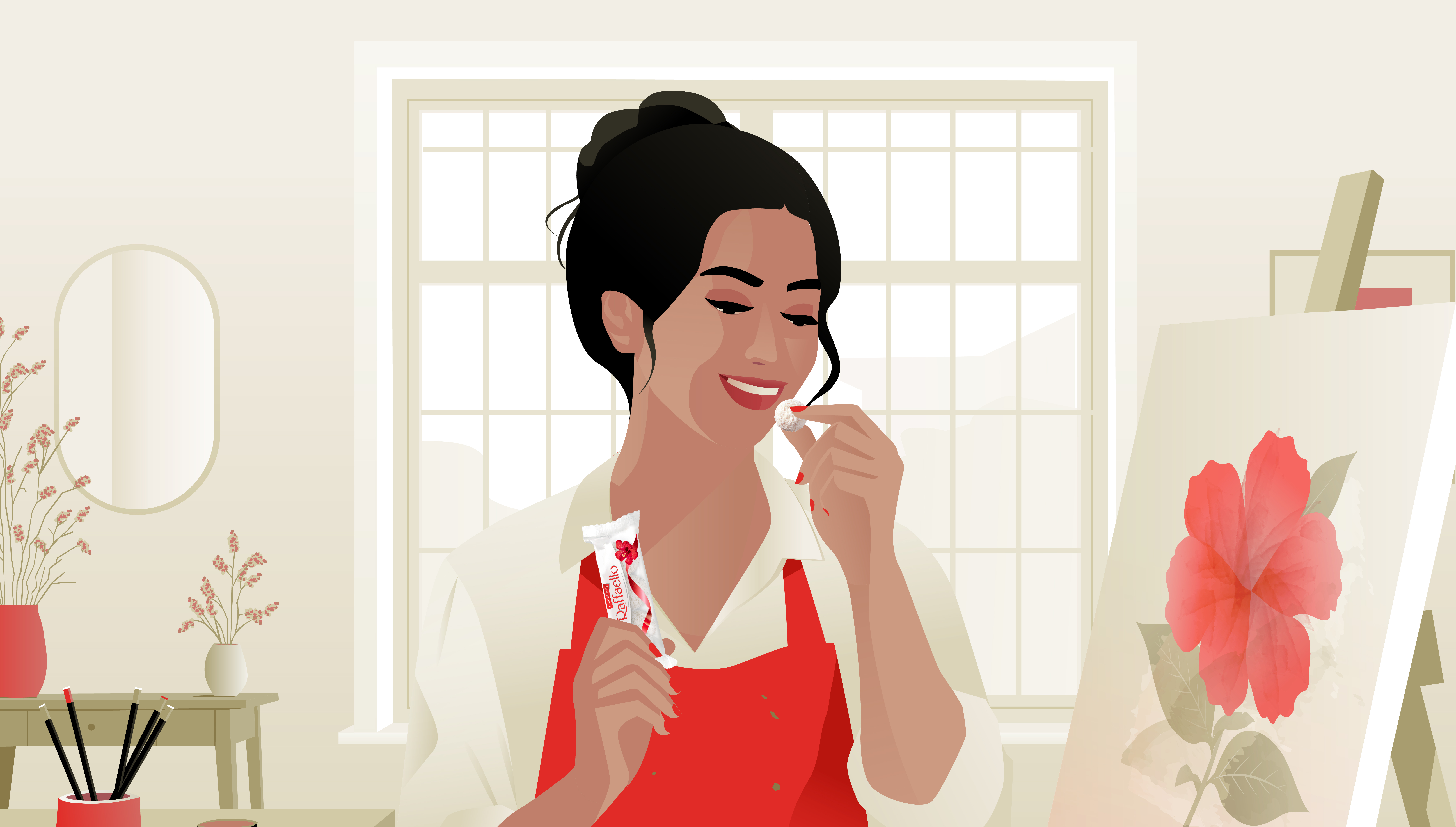 The illustrated work focused on small, relatable moments - loved ones sharing quiet gestures of care, or individuals pausing during the day to reward themselves for a job well done - reinforcing the idea that it is often the smallest moments that bring the greatest sense of pleasure.